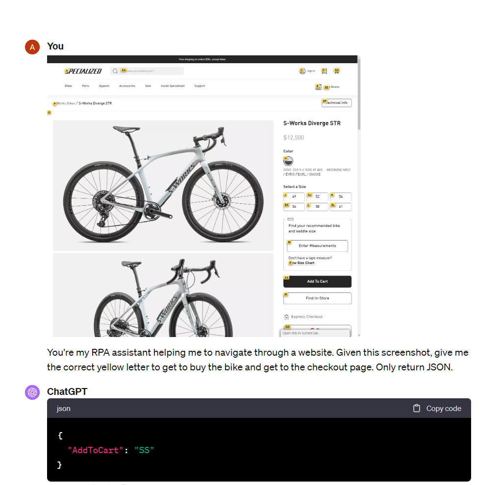 We can then feed the mapping information together with the screenshot to GPT-4V, and it gives me back the correct CSS selector or xpath that we can use for browser automation tasks.