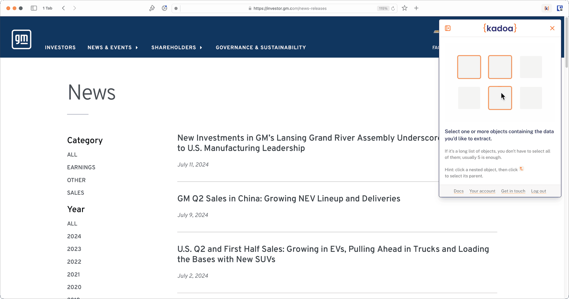 The Kadoa Chrome extension offers more flexibility than our auto-detect setup.