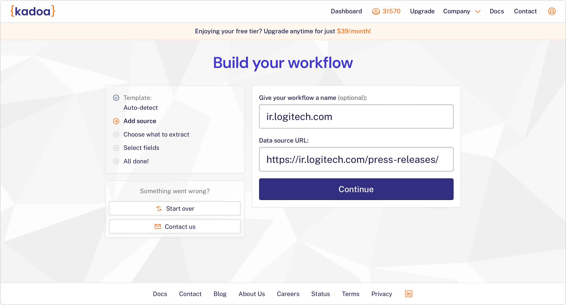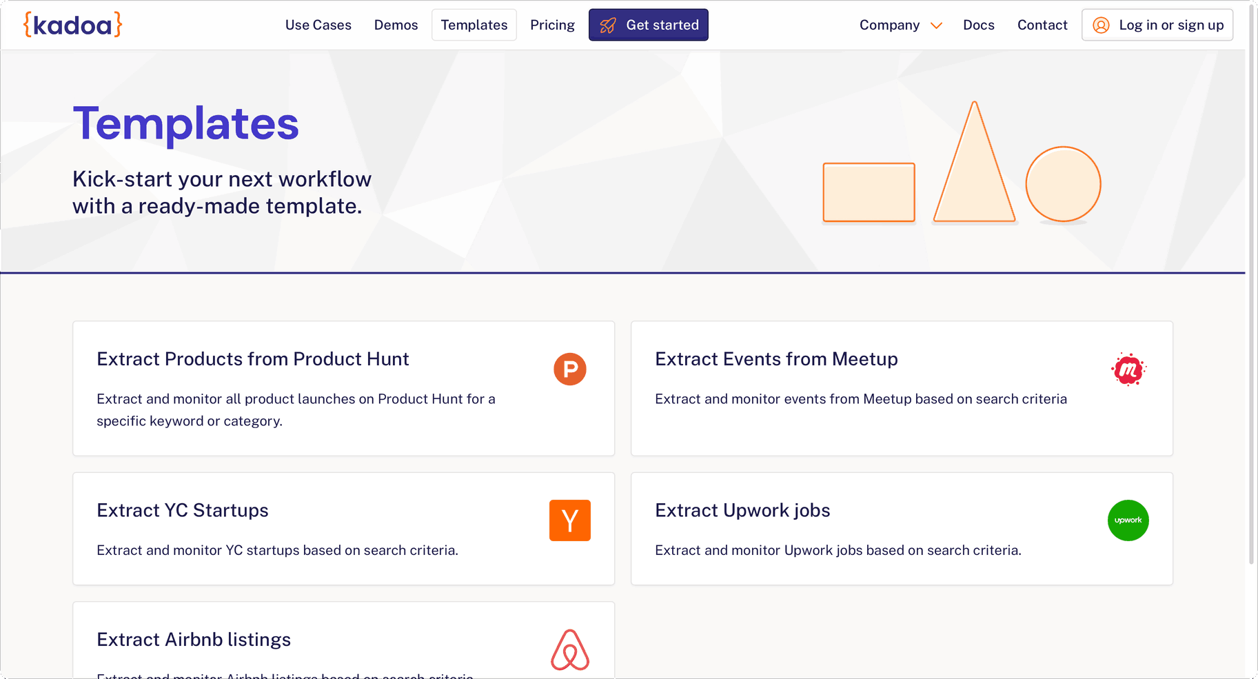 We've introduced pre-built workflow templates for popular website sources and industry use cases. You can try them with a single click.