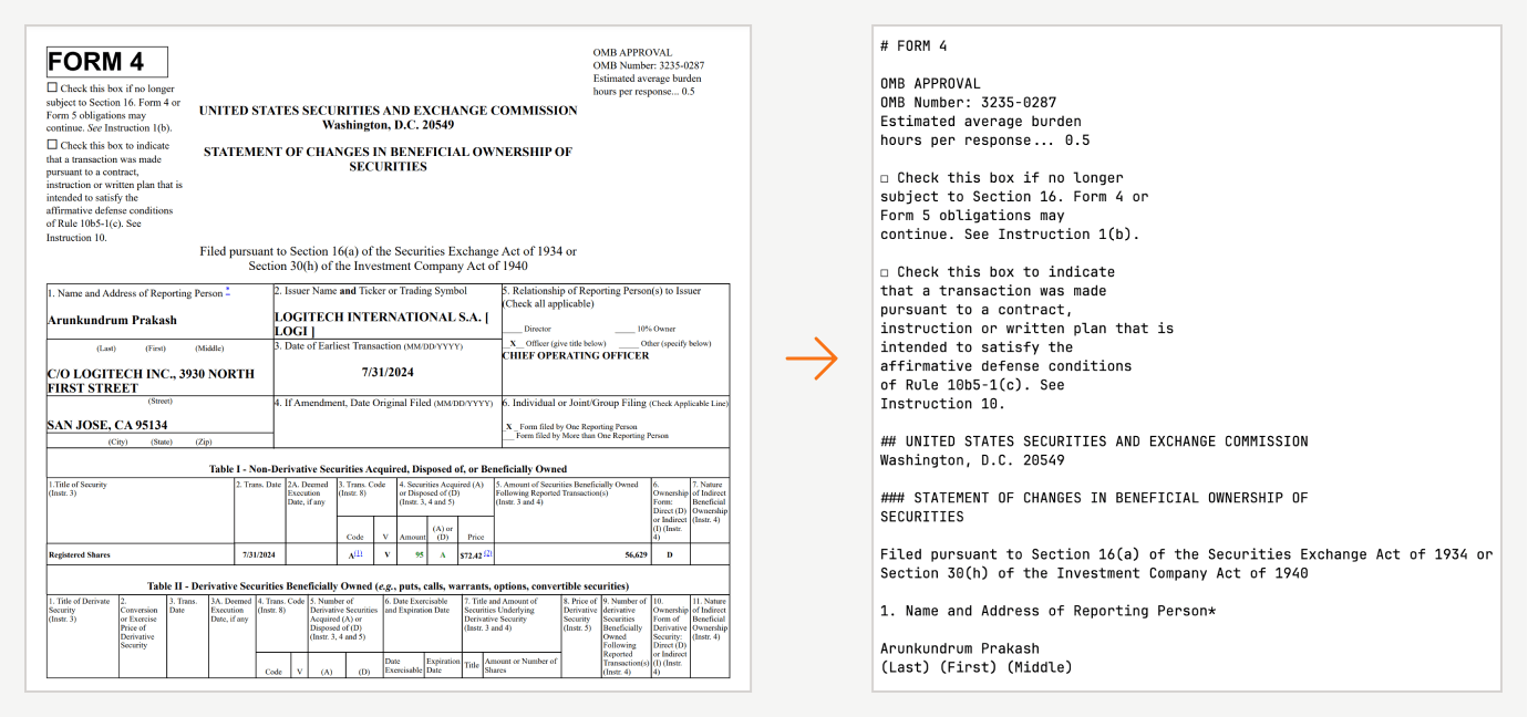 We've seen many use cases in traditional industries like finance where there's a strong need to process complex PDF documents into structured data. To address this, we've added the ability to extract PDF files from websites and convert them to markdown. This feature allows you to get structured data out of diverse PDFs at a high accuracy.